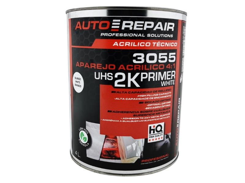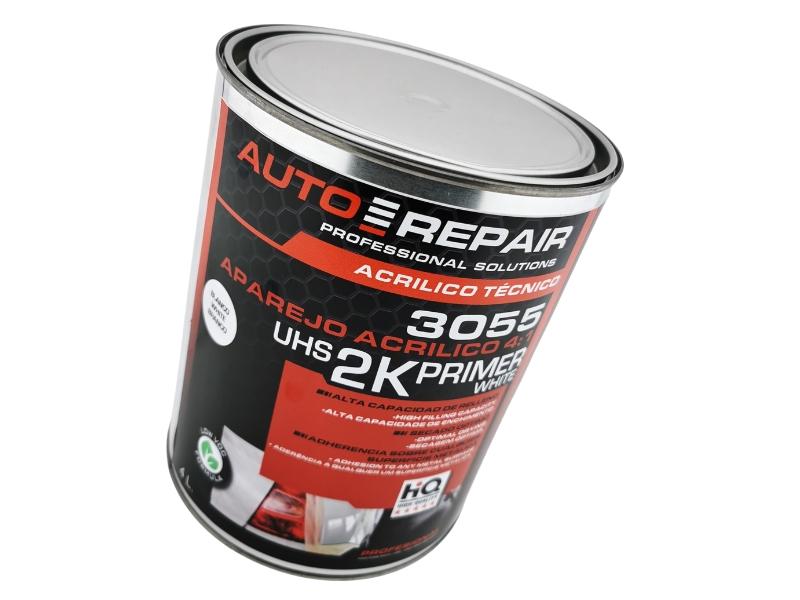 El Aparejo Acrílico 2K UHS (4:1) Blanco 3055 destaca por su alta capacidad de relleno, secado rápido y excelente lijado, lo que lo convierte en una elección preferida para talleres que buscan eficiencia y calidad en sus procesos de reparación de carrocerías.