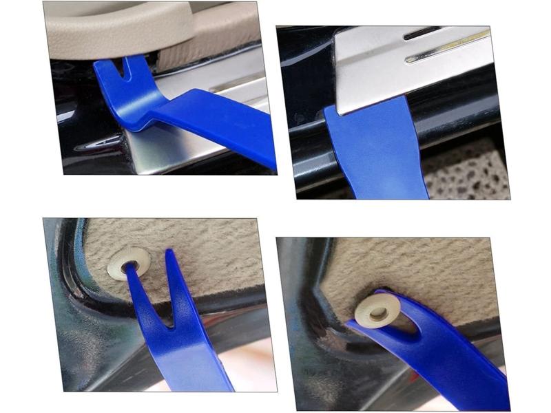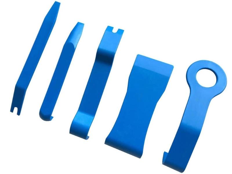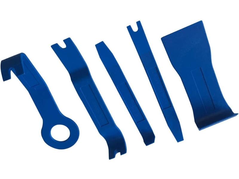 Juego completo de extractores de grapas y molduras en plástico ABS de alta resistencia. Incluye 5 piezas con múltiples aplicaciones en carrocerías.